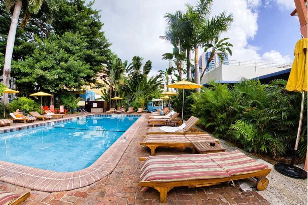Отель Freehand Miami 3 звезды, адрес на карте Майами-Бич, 2727 Indian Creek Dr, с характеристиками номеров и возможностью онлайн бронирования на площадке vashotel.ru , стоимость проживания и удобства.