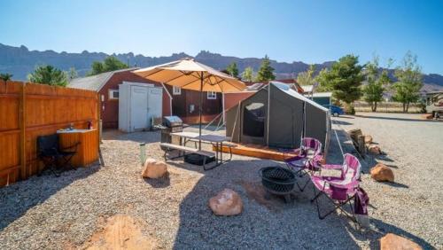Отель FunStays Glamping Setup Tent in RV Park #4 OK-T4 1 звезда, адрес на карте Моаб, 3310 Spanish Valley Drive, с описанием номеров и возможностью онлайн бронирования на сайте vashotel.ru , стоимость проживания и удобства.