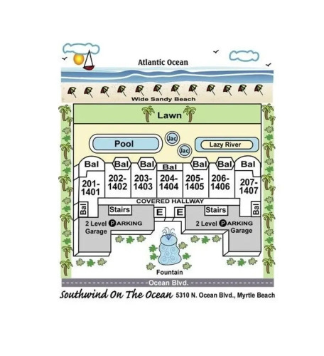 Отель South Wind - 1501 3 звезды, адрес на карте Миртл-Бич, 5310 N Ocean Blvd., с характеристиками номеров и возможностью онлайн бронирования на ресурсе vashotel.ru , стоимость проживания и удобства.