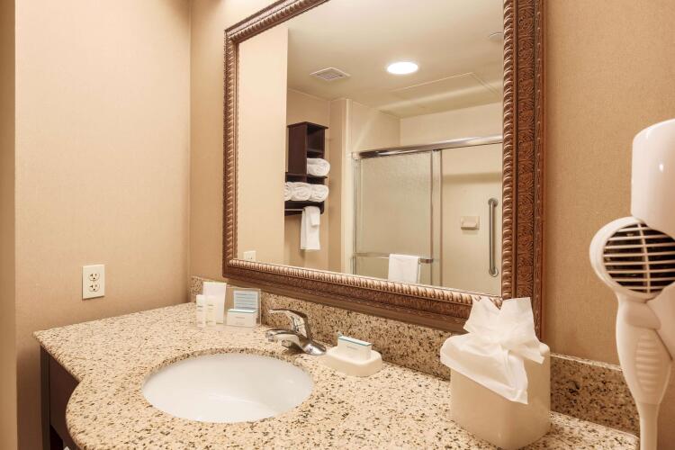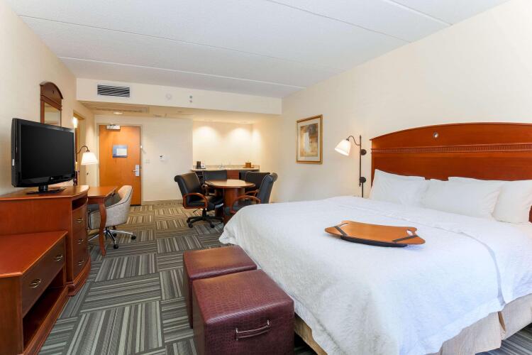 Отель Hampton Inn располагает 84 номерами, оформленными в элегантном стиле. В собственной ванной комнате есть ванна или душ, а также туалетные принадлежности и фен. В номерах предоставляется доступ в Интернет, есть ЖК-телевизор и телефон. Также в наличии мини-холодильник и микроволновая печь.