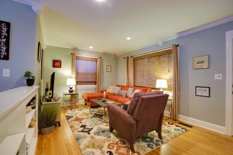 Отель Charming 2br/1.5ba East Nashville Home by Domio 3 звезды, адрес на карте Нэшвилл, 406 Scott Avenue, с характеристиками номеров и правом онлайн бронирования на ресурсе vashotel.ru , цены проживания и удобства.