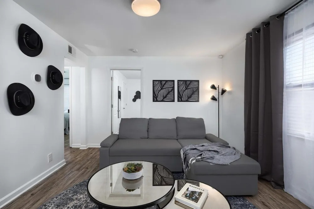 Отель Spacious 2BD Apt Near Music Row, адрес на карте Нэшвилл, 1601 Herman Street, с описанием номеров и доступностью онлайн бронирования на сайте vashotel.ru , стоимость проживания и удобства.
