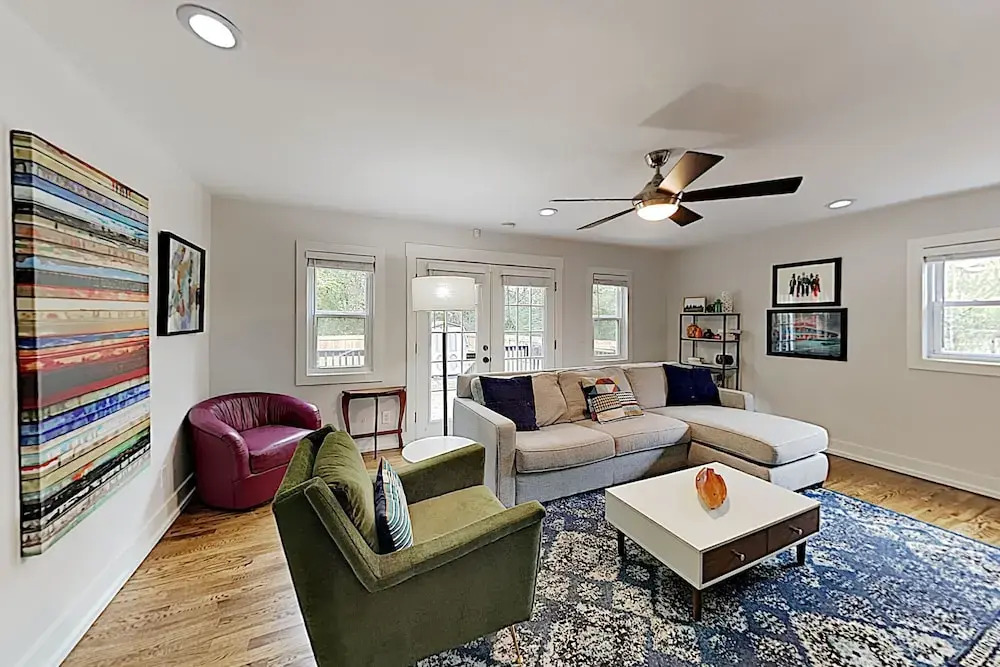 Отель Stylish East Nashville W/ Fenced Yard 3 Bedroom Home, адрес на карте Нэшвилл, 525 Norton Avenue, с характеристиками номеров и доступностью онлайн бронирования на сайте ВашОтель.RU , цены проживания и удобства.