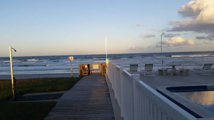 Отель Oceanside Village 2bdrm B2 3 звезды, адрес на карте Нью-Смирна-Бич, 4203 S. Atlantic Avenue, с характеристиками номеров и возможностью онлайн бронирования на сайте vashotel.ru , стоимость проживания и удобства.