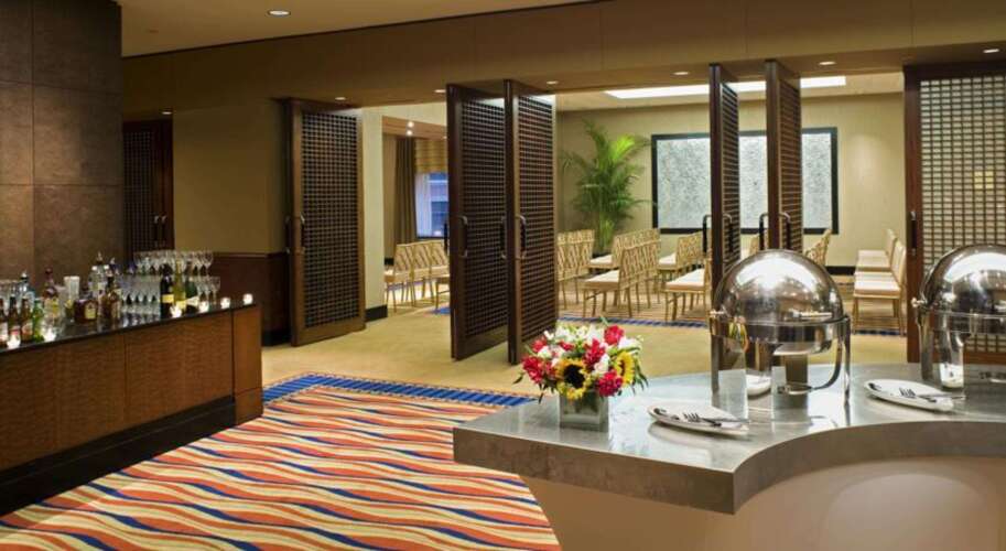 В ресторане отеля по утрам сервируется континентальный завтрак, а в течение дня гости здесь могут наслаждаться разнообразными блюдами американской кухни. В лаудж-баре вы сможете попробовать коктейли и прочие напитки. Также предоставляется услуга заказа блюд в номер. В пешей доступности находится большое количество ресторанов и баров.
