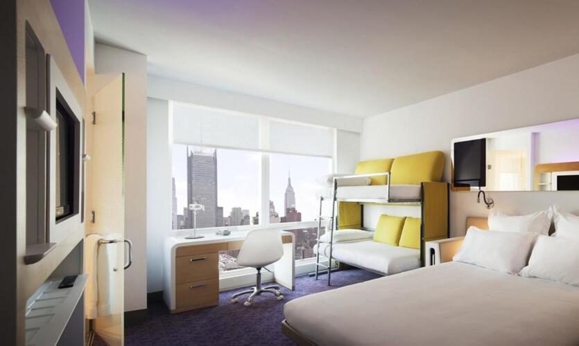 Отель YOTEL New York Times Square 3 звезды, адрес на карте Нью-Йорк, 570 Tenth Avenue, с характеристиками номеров и доступностью онлайн бронирования на площадке ВашОтель.RU , цены проживания и удобства.