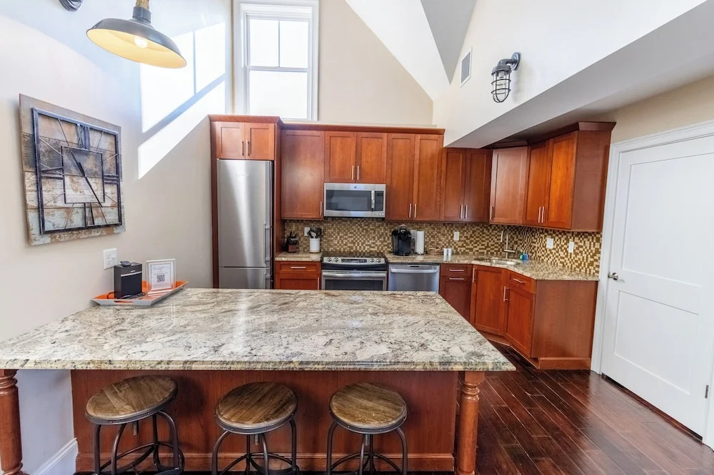 Хотите сбежать от суеты города и отдохнуть? Коттедж «The Newport Lofts – 543 Thames Street» располагается в Ньюпорте. Этот коттедж находится 1 км от центра города. Рядом с коттеджем — Музей парусного спорта, Кинг-Парк и Дом Самюэля Уайтхорна.