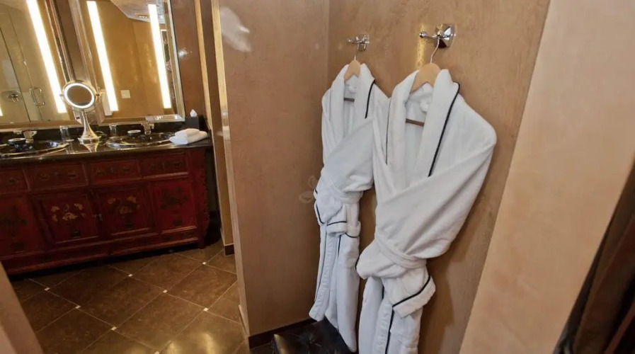 В номере гостей ждут душ, телевизор и халат. Перечисленные услуги есть не во всех номерах.