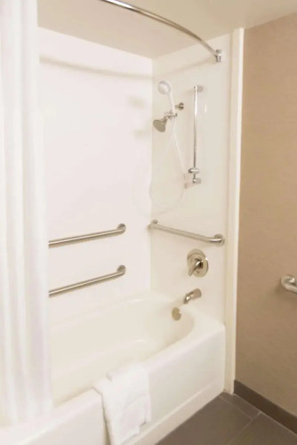 Отель Hampton Inn Muskegon 2 звезды, адрес на карте Нортон-Шорс, 1401 E Ellis Rd, с описанием номеров и возможностью онлайн бронирования на ресурсе vashotel.ru , стоимость проживания и удобства.