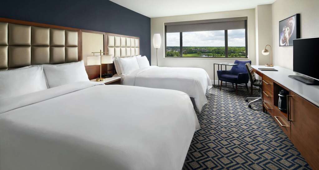 В номерах (386) отеля Chicago Oak Brook Hills Marriott Resort есть минибар и кофеваркачайник. Постельные принадлежности включают: пружинный ортопедический матрас, а также дизайнерские постельные принадлежности, три простыни и перьевое одеяло. В ванных комнатах есть купальный халат, бесплатные туалетные принадлежности, а также фен. За дополнительную плату предоставляется высокоскоростной проводной, а также беспроводной доступ в Интернет. В номерах предоставляются бесплатная газета (пн-пт) и многоканальный телефон с поддержкой голосовой почты. В каждом номере есть телевизор. Предлагается следующее: кабельные каналы премиум-класса и платные фильмы. В номерах имеется утюг, гладильная доска и радиочасы. По запросу предоставляется: гипоаллергенные постельные принадлежности; обслуживание номеров выполняется ежедневно. Все номера отеля – это номера для некурящих.
