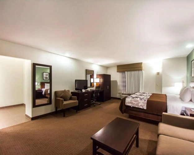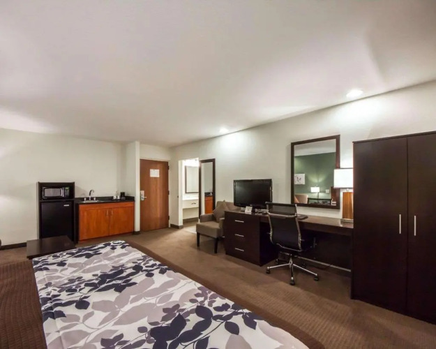 Отель SLEEP INN & SUITES EDMOND, адрес на карте Оклахома-Сити, 3608 S. Broadway Extension, Edmond,73013, с характеристиками номеров и правом онлайн бронирования на сайте vashotel.ru , стоимость проживания и удобства.