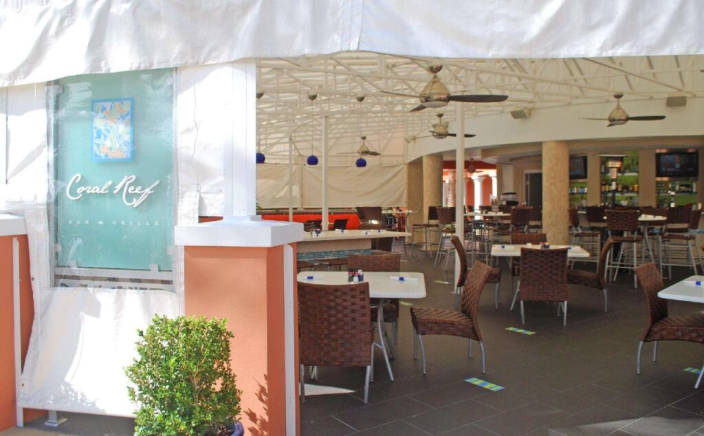 В отеле несколько ресторанов, где готовят блюда национальной и международной кухни. На территории несколько баров, множество тенистых беседок для отдыха и открытых террас. В отеле также работает супермаркет.
