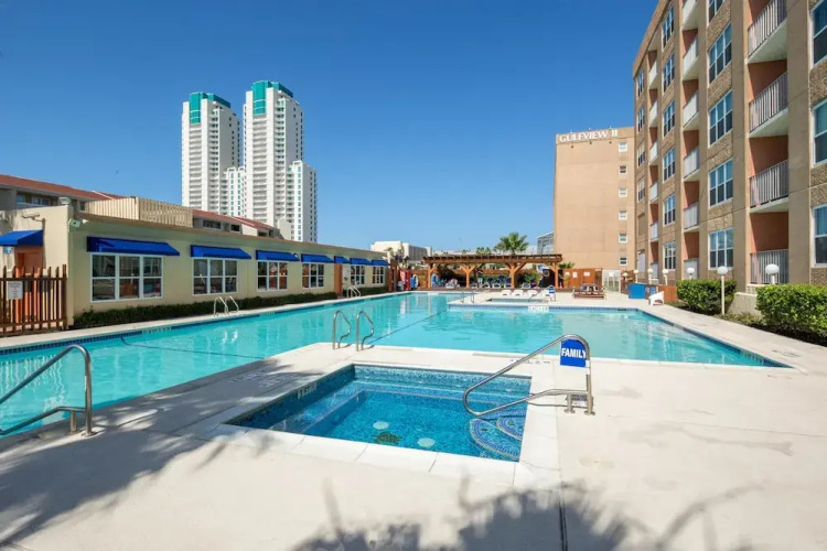 Отель Gulf View II, адрес на карте Общественный пляж о. Падре Айленд, 130 Padre Blvd. #607, с характеристиками номеров и доступностью онлайн бронирования на ресурсе vashotel.ru , цены проживания и удобства.