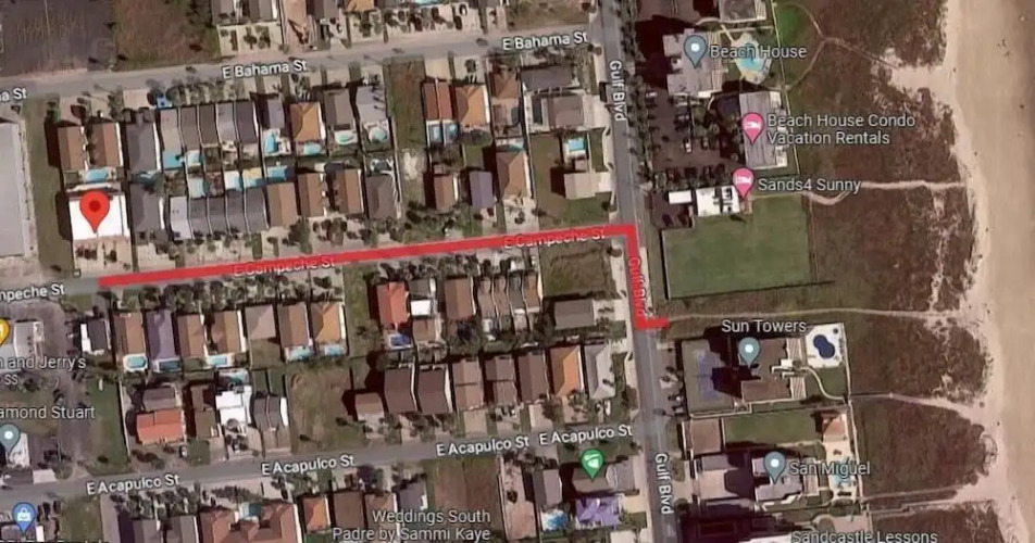 адрес на карте Общественный пляж о. Падре Айленд, 106 East Campeche Street, с характеристиками