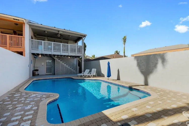 Отель New! Stunning House w/ Pool & 1 Block From Beach! 3 звезды, адрес на карте Общественный пляж о. Падре Айленд, 117 E Mars Ln #B, с характеристиками номеров и доступностью онлайн бронирования на площадке vashotel.ru , цены проживания и удобства.