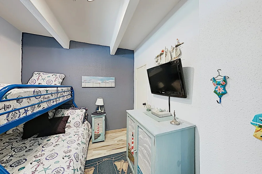 Отель Stylish Gulf-front Getaway - Heated Pool & Hot Tub 2 Bedroom Condo, адрес на карте Общественный пляж о. Падре Айленд, 2000 Padre Blvd, с характеристиками номеров и доступностью онлайн бронирования на сайте vashotel.ru , цены проживания и удобства.