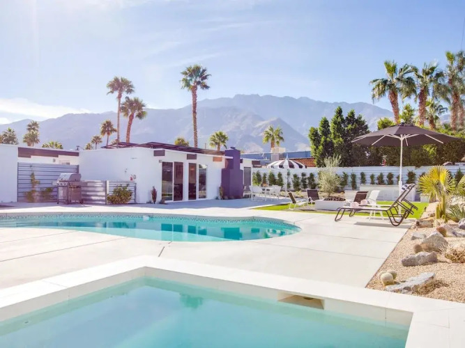 Отель Bubble Gum Modern Holiday home 3 4 звезды, адрес на карте Палм-Спрингс, 828 E Sunair Road, с характеристиками номеров и правом онлайн бронирования на сайте vashotel.ru , стоимость проживания и удобства.