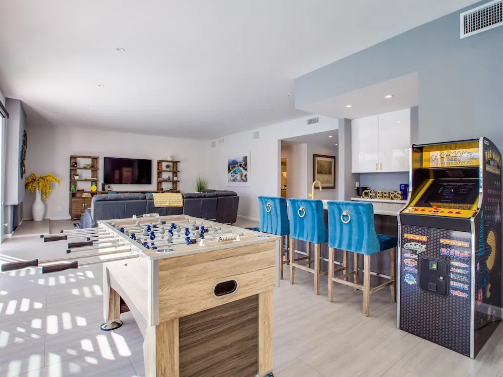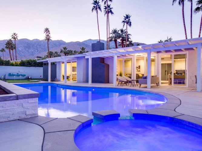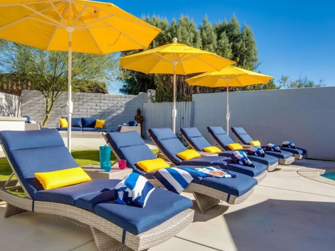 Отель Funtopia in the Canyons Holiday home 3 4 звезды, адрес на карте Палм-Спрингс, 1675 S La Verne Way, с описанием номеров и возможностью онлайн бронирования на сайте vashotel.ru , стоимость проживания и удобства.
