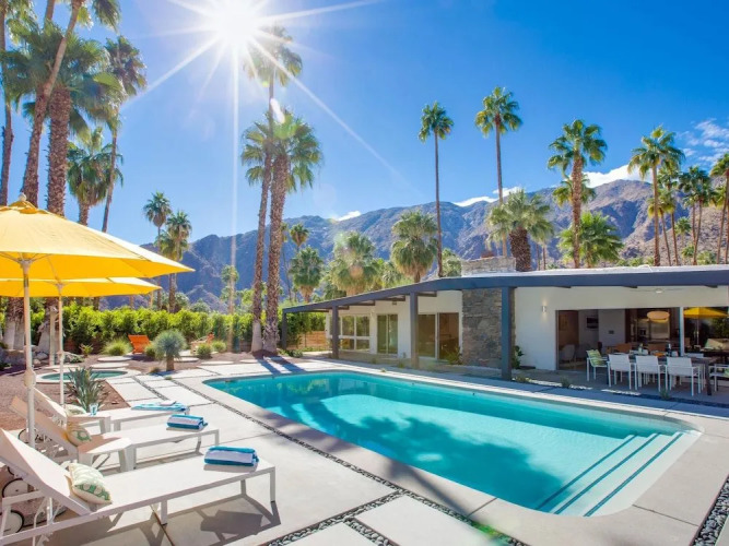 Отель Modern Monte Vista Holiday home 4 4 звезды, адрес на карте Палм-Спрингс, 1290 Abrigo Rd, с характеристиками номеров и возможностью онлайн бронирования на площадке ВашОтель.RU , стоимость проживания и удобства.