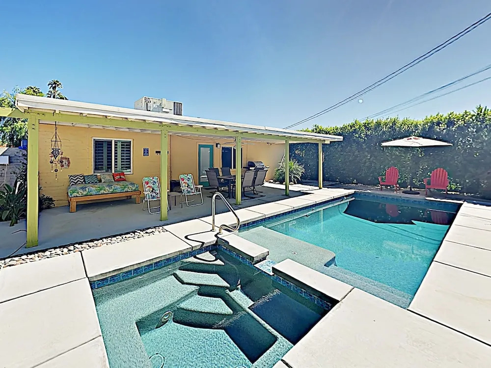 Отель New Listing! Movie Colony Oasis W/ Pool & Spa 3 Bedroom Home 3 звезды, адрес на карте Палм-Спрингс, 633 N Sunrise Way, с описанием номеров и правом онлайн бронирования на площадке vashotel.ru , цены проживания и удобства.