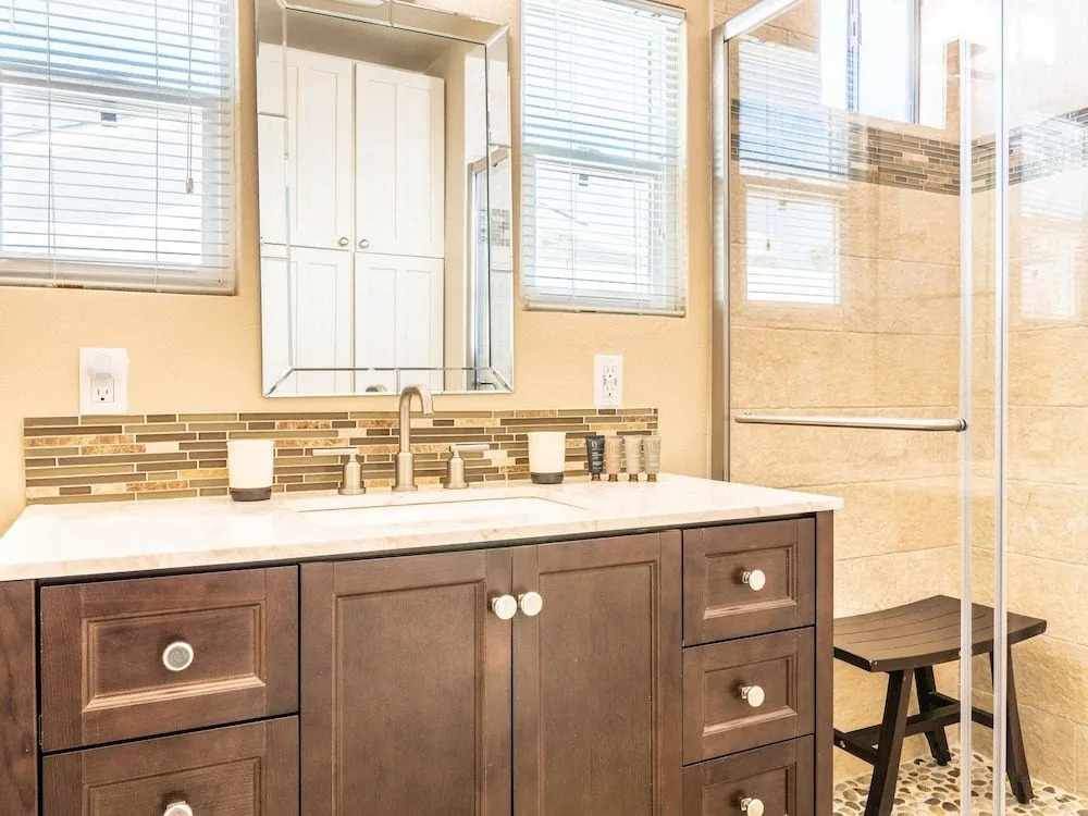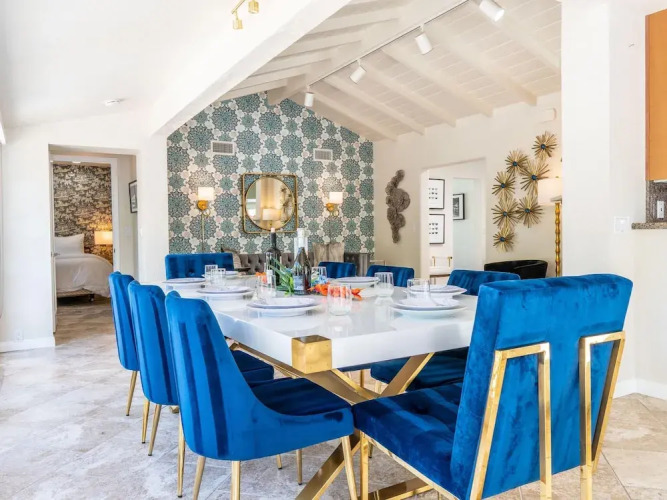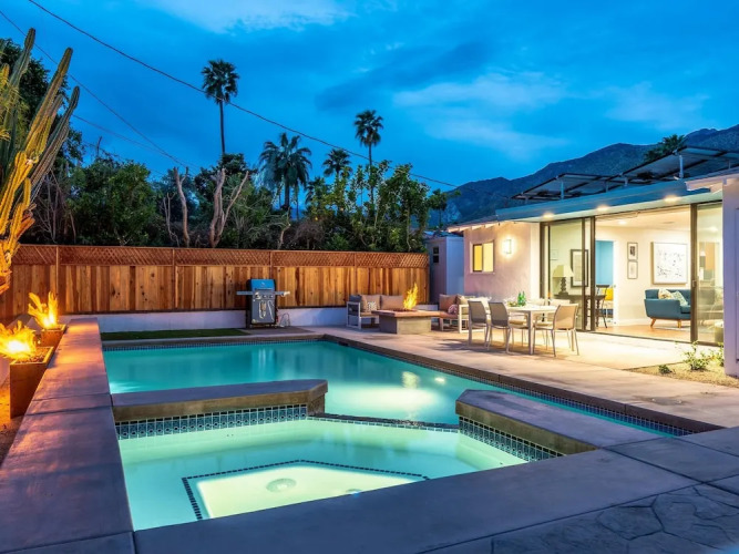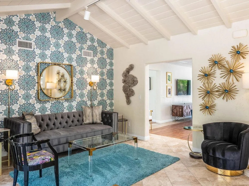 Активный или пассивный отдых — выбор за вами. Коттедж «Old Blue Eyes» находится в Палм-Спрингсе. Этот коттедж расположен 1 км от центра города. Рядом с коттеджем можно прогуляться. Неподалёку: Cameron Center Shopping Center, Парк Баристо и Plaza de las Flores Shopping Center.