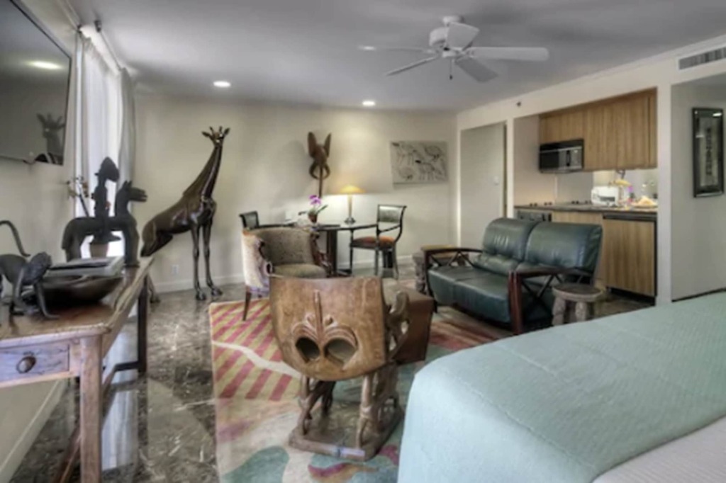 Всего в отеле Dinah's Garden Hotel & Trader Vic's 129 номеров с холодильниками и кофе-мейкерами. Кроме того, в каждом номере имеется сейф и телевизор с игровой приставкой. По предварительному запросу гостям предоставляются детские и дополнительные кровати. В отеле допускается размещение с домашними животными.