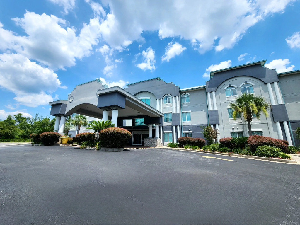 Отель Best Western Plus Blue Angel Inn 2 звезды, адрес на карте Пенсакола, 2390 W. Detroit Blvd, I-10 Exit 7, с описанием номеров и возможностью онлайн бронирования на сайте vashotel.ru , стоимость проживания и удобства.
