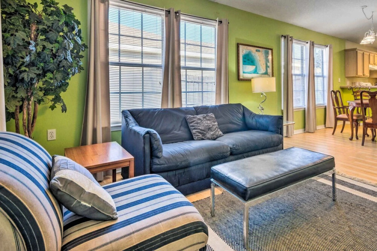Отель Cute Pensacola Townhome ~ 9 Mi to Downtown!, адрес на карте Пенсакола, 8033 Stonebrook Dr, с описанием номеров и возможностью онлайн бронирования на ресурсе vashotel.ru , цены проживания и удобства.