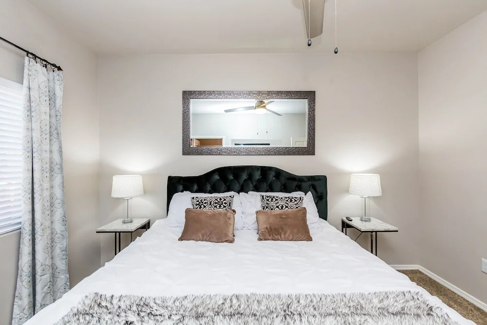 Отель Executive 3 BR King, Close to Kierland & TPC w Parking 1025, адрес на карте Финикс, 5635 East Bell Road, с характеристиками номеров и доступностью онлайн бронирования на ресурсе vashotel.ru , цены проживания и удобства.