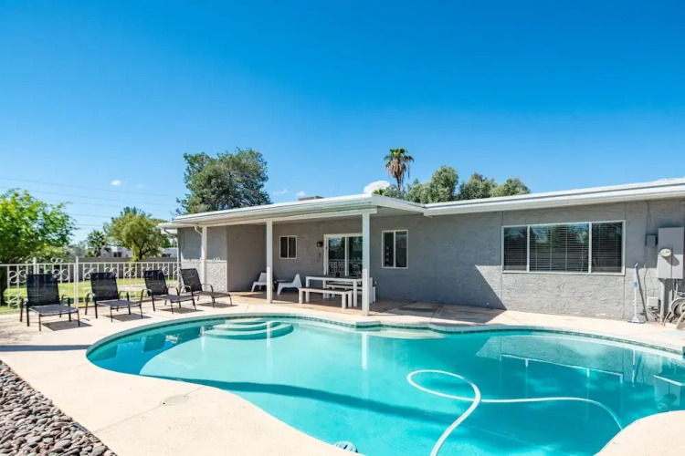 Отель WanderJaunt 3BR Home N. Scottsdale 3 звезды, адрес на карте Финикс, 13801 North 56th Place, с описанием номеров и возможностью онлайн бронирования на сайте vashotel.ru , цены проживания и удобства.