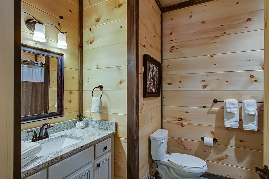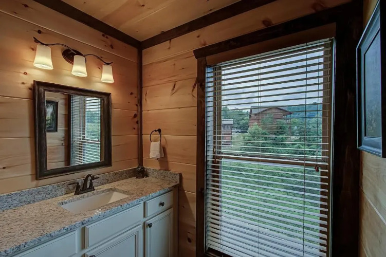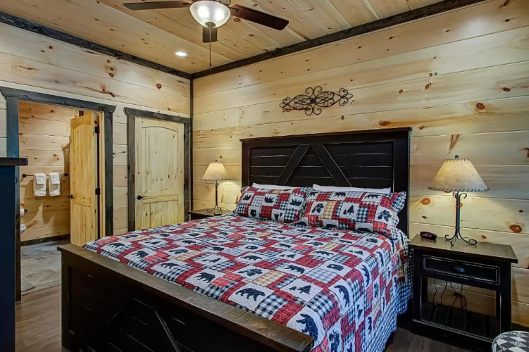 Отель Luxury Brand New Cabin 5b 5.5ba with Arcade, Theater 1 звезда, адрес на карте Пиджен-Фордж, 4453 Shangrila Way, с описанием номеров и доступностью онлайн бронирования на сайте vashotel.ru , цены проживания и удобства.