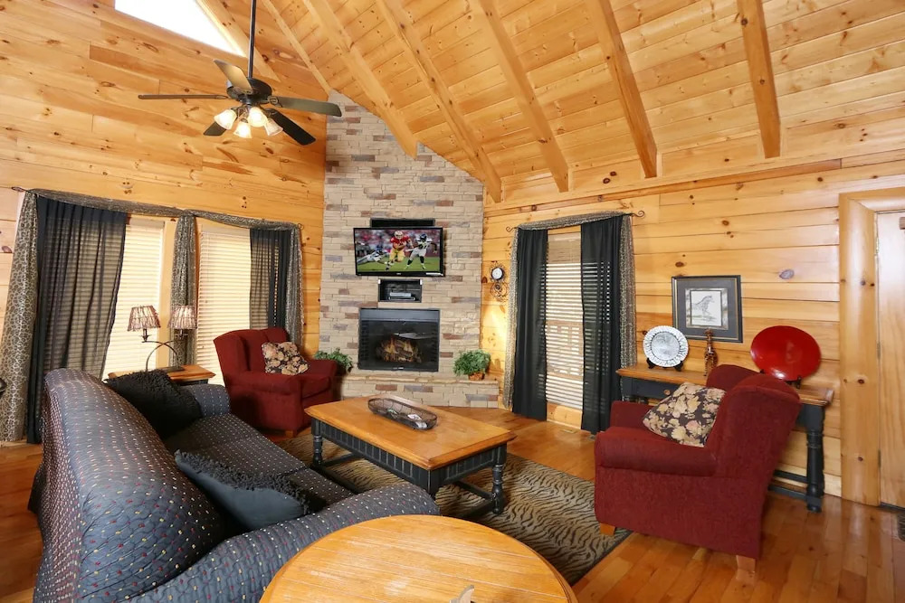 Отель Wild Adventures - One Bedroom Cabin 3 звезды, адрес на карте Пиджен-Фордж, 1932 Cougar Crossing Way, с характеристиками номеров и доступностью онлайн бронирования на сайте vashotel.ru , стоимость проживания и удобства.