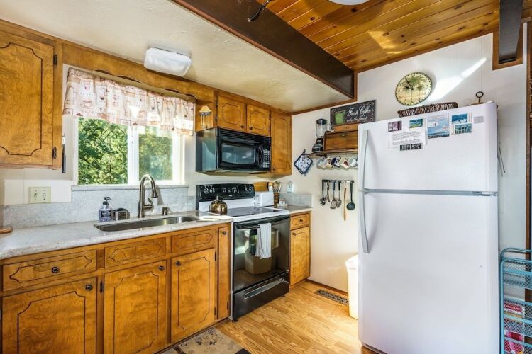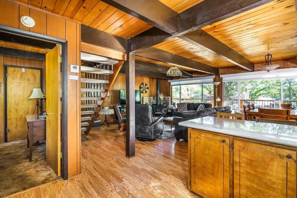 Отель Cozy Cabin On The Cove - Lakefront with Private Dock by Yosemite Region Resorts 3 звезды, адрес на карте Пайн-Маунтин-Лейк, 19579 Pleasant View Drive, с характеристиками номеров и возможностью онлайн бронирования на ресурсе vashotel.ru , стоимость проживания и удобства.