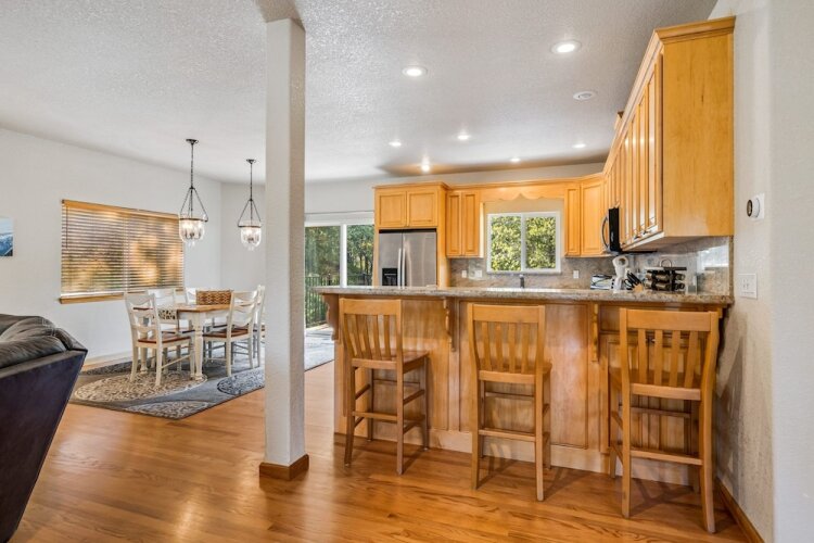 Отель Sunnyside Up - Wooded Home with Foosball Table by Yosemite Region Resorts 3 звезды, адрес на карте Пайн-Маунтин-Лейк, 12295 Sunnyside Way, с описанием номеров и правом онлайн бронирования на сайте vashotel.ru , цены проживания и удобства.