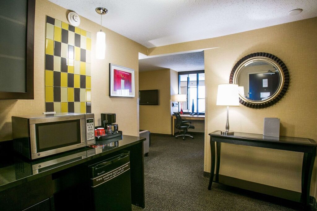 В кондиционируемых номерах (103) отеля Cambria Suites Airport предоставляются следующие удобства: CD-проигрыватель и кофеваркачайник. Во всех номерах есть выделенные зоны для отдыха, а также стол и диван-кровать. В номерах есть холодильник и микроволновая печь. В ванных комнатах есть дизайнерские туалетные принадлежности, а также фен. Бесплатно предоставляется беспроводной доступ в Интернет. В номерах предоставляются бесплатные газеты и многоканальный телефон с поддержкой голосовой почты. В каждом номере есть ЖК-телевизоры. Предлагается следующее: DVD-проигрыватель. Также предоставляются следующие удобства: утюг, гладильная доска и радиочасы. По запросу предоставляется: услуга пробуждения по телефону; обслуживание номеров выполняется ежедневно. Все номера отеля – это номера для некурящих.