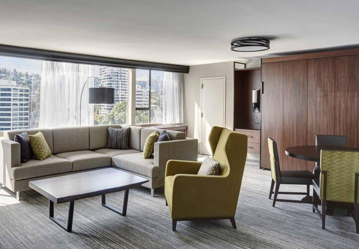 Отель Portland Marriott Downtown Waterfront 4 звезды, адрес на карте Портленд, 1401 SW Naito Pkwy, с описанием номеров и правом онлайн бронирования на площадке vashotel.ru , стоимость проживания и удобства.