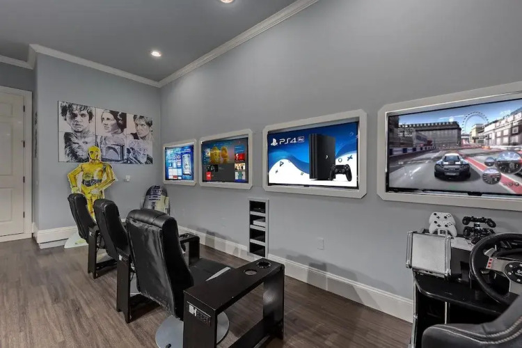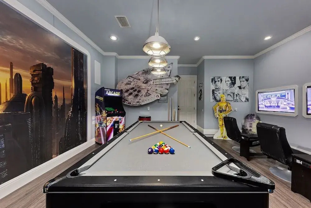 Отель Theater Room Game Room Gym 7 Br home by RedAwning, адрес на карте Реюньон, 7381 Gathering Court, Pincode- 34747, Kissimmee, United States, Four Corners, Florida, с характеристиками номеров и возможностью онлайн бронирования на сайте ВашОтель.RU , цены проживания и удобства.