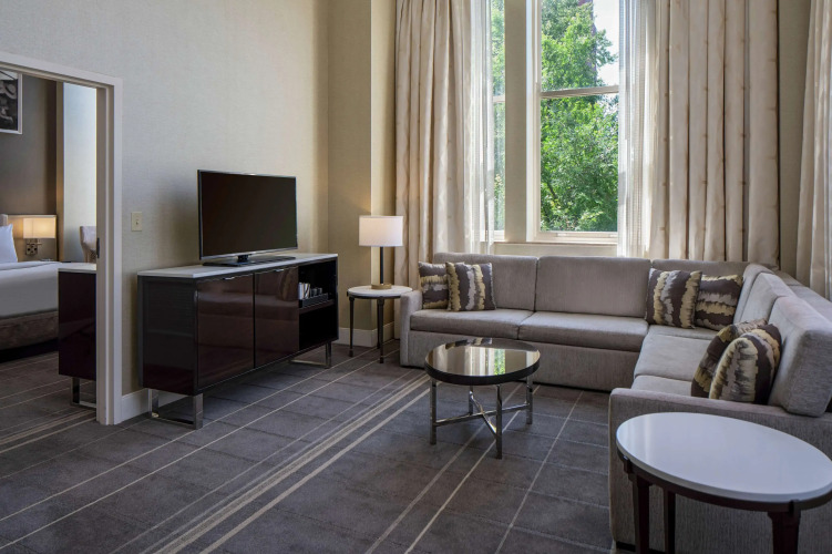 Отель Hilton Richmond Downtown 4 звезды, адрес на карте Ричмонд, 501 E Broad St, с описанием номеров и доступностью онлайн бронирования на ресурсе vashotel.ru , стоимость проживания и удобства.