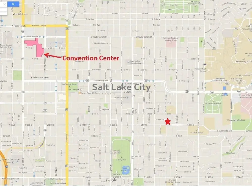 Отель Downtown 5-Bedroom Home with a Hot Tub 3 звезды, адрес на карте Солт-Лейк-Сити, 1031 East 800 South, с описанием номеров и правом онлайн бронирования на площадке vashotel.ru , цены проживания и удобства.