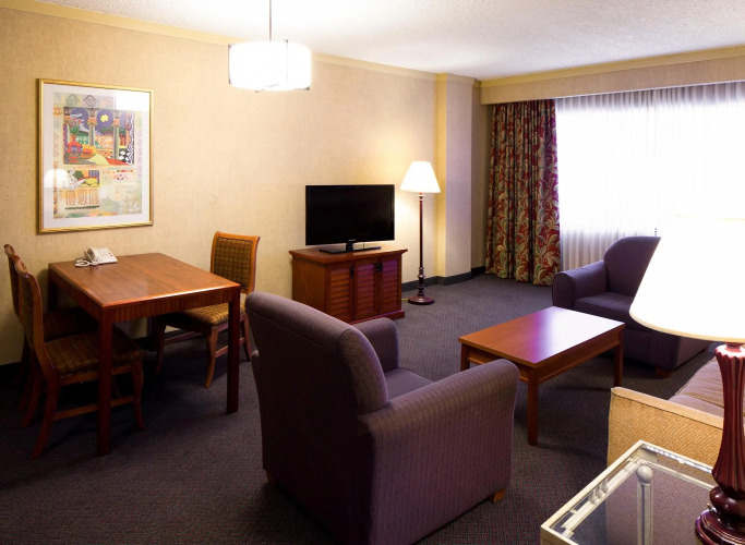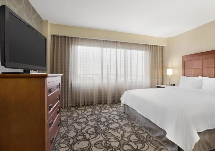Отель Embassy Suites by Hilton San Antonio Airport 3 звезды, адрес на карте Сан-Антонио, 10110 U S Hwy 281 N, с характеристиками номеров и возможностью онлайн бронирования на сайте ВашОтель.RU , цены проживания и удобства.