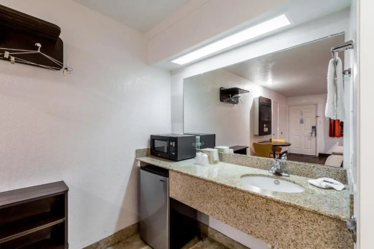 Отель Motel 6 San Antonio, Tx - Frost Bank Center 2 звезды, адрес на карте Сан-Антонио, 3370 IH 35 North, с описанием номеров и возможностью онлайн бронирования на ресурсе vashotel.ru , стоимость проживания и удобства.