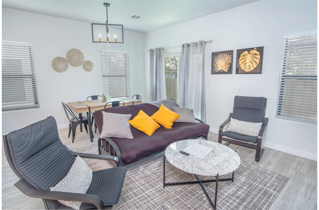 Отель Spectacular Cozy 3 BR Plus 2 and a Half BA Apt Near Downtown, адрес на карте Сан-Антонио, 1003 South Olive Street, #102, с характеристиками номеров и возможностью онлайн бронирования на площадке ВашОтель.RU , стоимость проживания и удобства.
