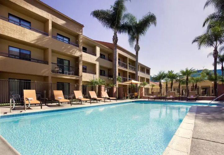 Отель Courtyard by Marriott San Diego Sorrento Valley 3 звезды, адрес на карте Сан-Диего, 9650 Scranton Rd, с характеристиками номеров и правом онлайн бронирования на сайте vashotel.ru , стоимость проживания и удобства.