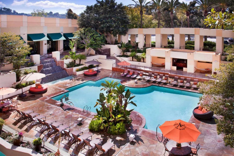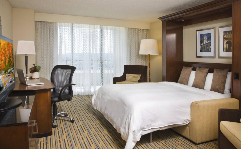 Отель San Diego Marriott Mission Valley 4 звезды, адрес на карте Сан-Диего, 8757 Rio San Diego Dr, с характеристиками номеров и правом онлайн бронирования на ресурсе vashotel.ru , стоимость проживания и удобства.