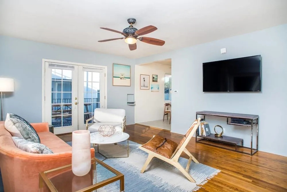 Отель Stylish 2br/1ba in the Heart of PB by Domio, адрес на карте Сан-Диего, 4305 Jewell Street, с описанием номеров и правом онлайн бронирования на площадке vashotel.ru , стоимость проживания и удобства.