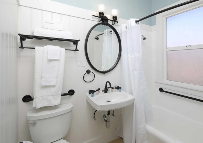 В номере вы найдёте душ. Оснащение зависит от выбранной категории номера.