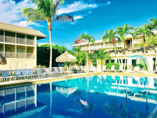 Отель Sanibel Siesta on the Beach Unit 206 2 Bedrooms 2 Bathrooms Condo, адрес на карте Санибел, 1246 Fulgur ST, с характеристиками номеров и возможностью онлайн бронирования на ресурсе vashotel.ru , цены проживания и удобства.