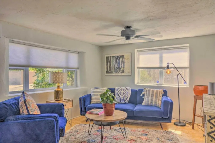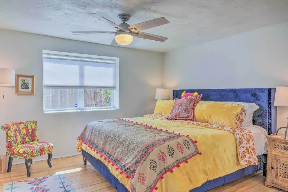 Место для тех, кто устал от соседей! Коттедж «Chic Bungalow: Yard & Fire Pit ~ 2 Mi to Downtown» находится в Санта-Фе. Этот коттедж расположен в 3 км от центра города. Рядом с коттеджем можно прогуляться. Неподалёку: Recursos de Santa Fe, Ralph T. Coe Center for the Arts и Стеклодувная мастерская Liquid Light Glass.