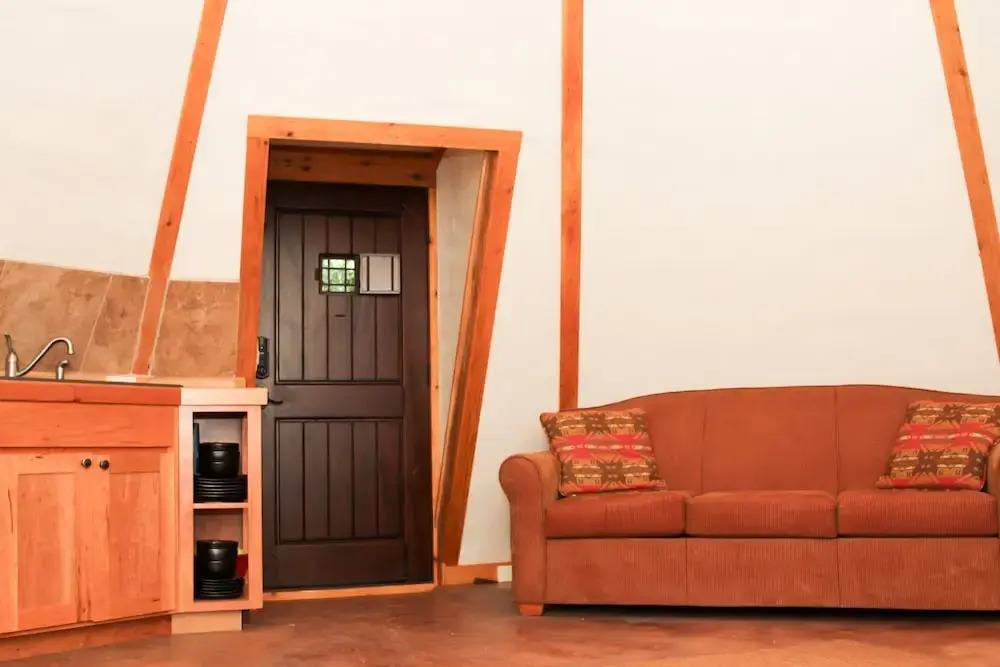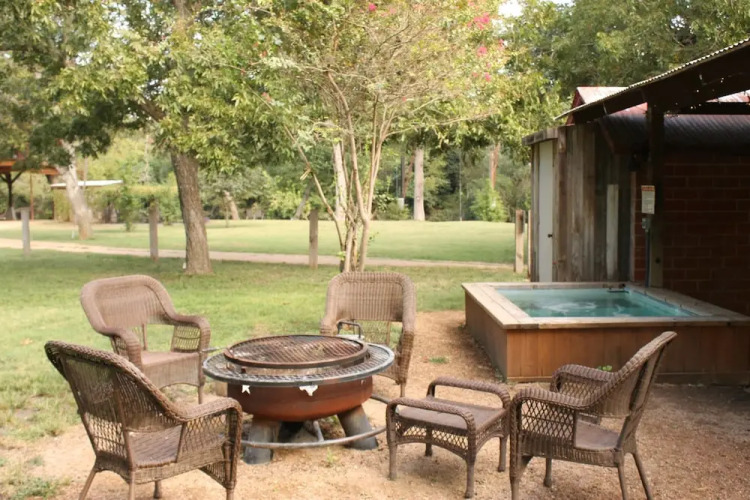 Отель Geronimo Creek Retreat- Tipi 3 Jumping Fish 1 Bedroom 1 Bathroom Cabin, адрес на карте Сегуин, 2050 Laubach Rd, с характеристиками номеров и доступностью онлайн бронирования на сайте vashotel.ru , цены проживания и удобства.
