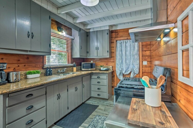 Отель Cozy Cabin w/ Deck < 1 Mi to Shaver Lake! 3 звезды, адрес на карте Шейвер-Лейк, 42036 Tollhouse Rd, с описанием номеров и возможностью онлайн бронирования на ресурсе ВашОтель.RU , стоимость проживания и удобства.